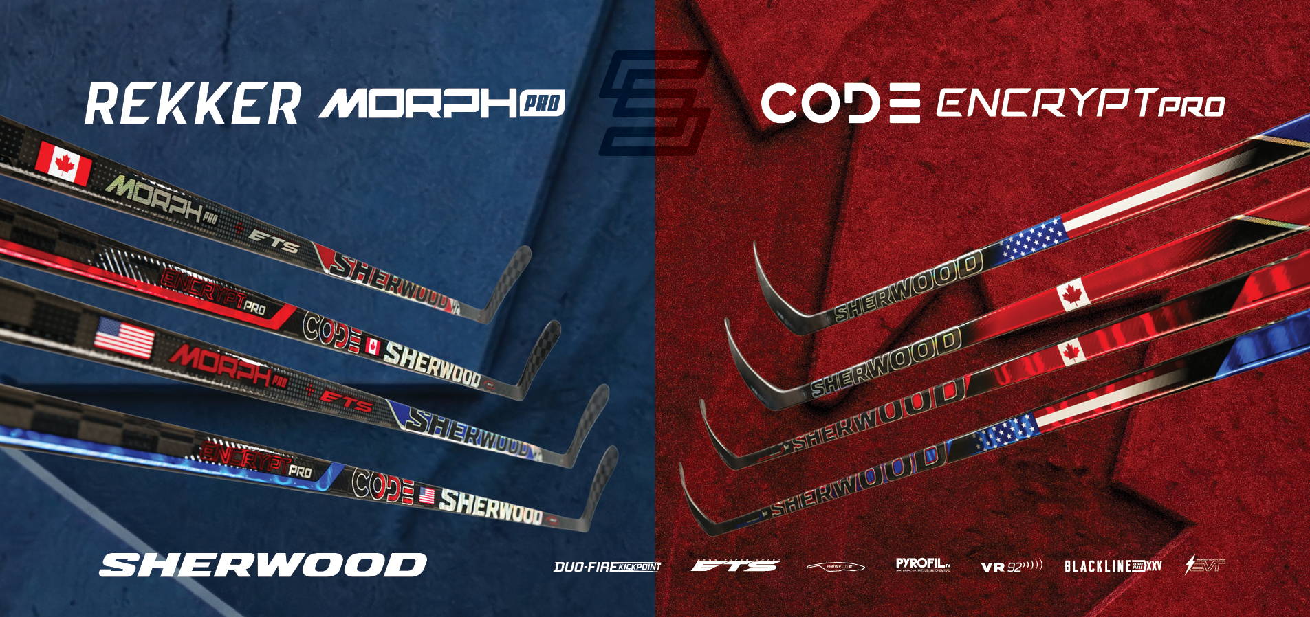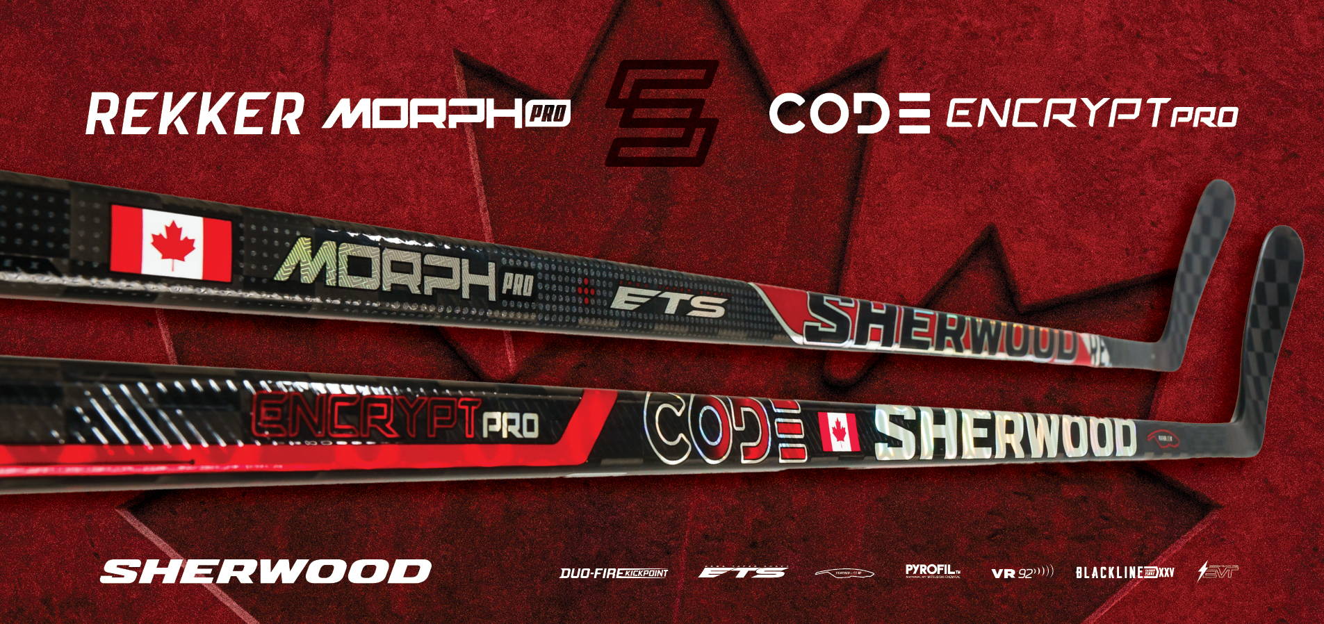 Unleash the spirit of a nation with Sherwood’s Canada Edition sticks. Built for players who carry the pride of Canadian hockey into every shift, the REKKER Morph Pro Canada Edition and the CODE Encrypt Pro Canada Edition blend bold red and white heritage with cutting edge performance inspired by the game’s roots.